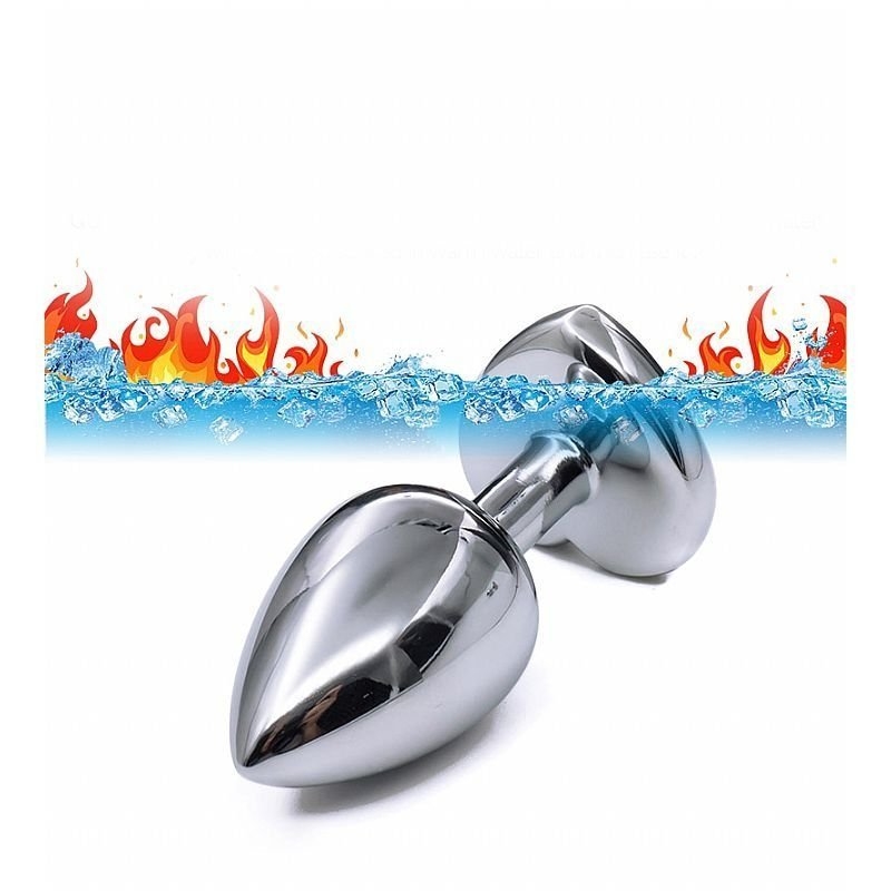 Plug anal de luxo em metal, cônico, elaborado em alumínio fundido e polido a mão, possui em sua base uma pedra lapidada que lembra um diamante colorido.